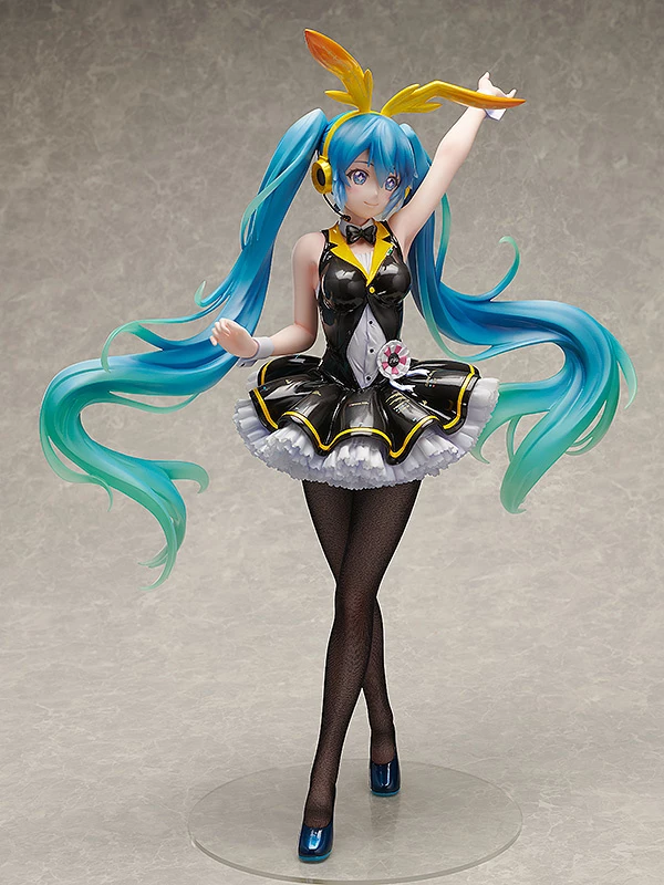 Miku-chan returns as a carefree and colorful bunny girl!From FREEing comes a 1/4 scale figure re-release of Hatsune Miku in her "My Dear Bunny" module outfit from the popular arcade rhythm game Hatsune Miku Project DIVA Arcade! Measuring an attention-grabbing 18.1” tall, she is captured in a cheerful pose in a patent black dress with a ruffly skirt and bright bunny ears as she gives an endearing smile. The gradient of her twintails looks wonderful, and she features real fabric net tights for a realistic look. Enjoy her cute charm as part of your collection!
