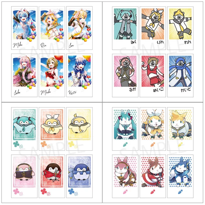 From Eterno Recit comes new goods straight from the event “Hatsune Miku Creators Party”! These collectible card sets feature artwork by popular illustrators of your favorite Vocaloids including Miku, Meiko, Kaito, Rin, Len, and Luka in a Polaroid-style design. Choose from art by Shirayuki Towa, takadabear, RURUTEA, or Ikuchibyouin. Each set includes 6 colorful cards.