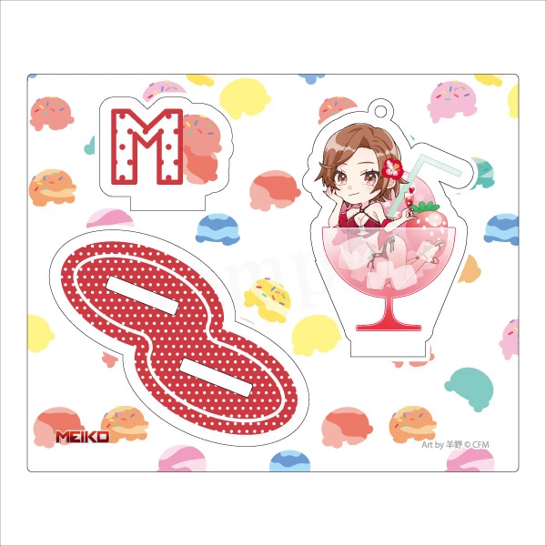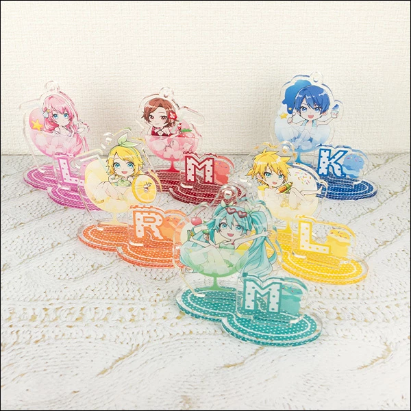 From Eterno Recit comes new character goods straight from the event “Hatsune Miku Summer Party”! These collectible acrylic stand keychains feature colorful artwork of Vocaloids Miku, Meiko, Kaito, Rin, Len, and Luka in an adorable chibi style by illustrator Youno. Each one also comes with a themed stand with their initial in their image color so you can display them on your desk or shelf too!