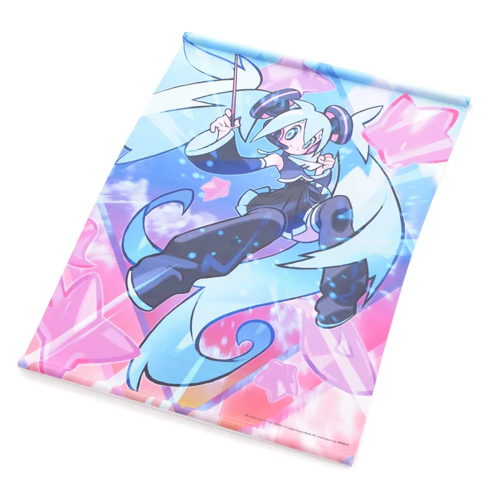 The illustration is done in a super modern pop style that perfectly suits the Vocaloid star, and it’s made using soft and smooth polyester suede that looks great on walls! It also comes with poles and string so you’ll be able to hang it easy wherever you want it, and it’s B2 sized so you can admire every little detail!