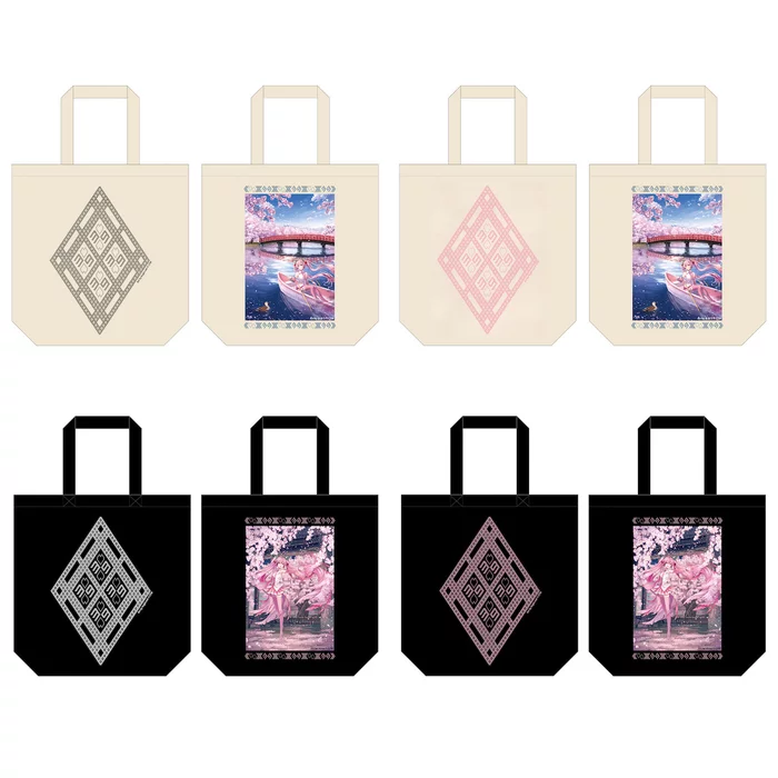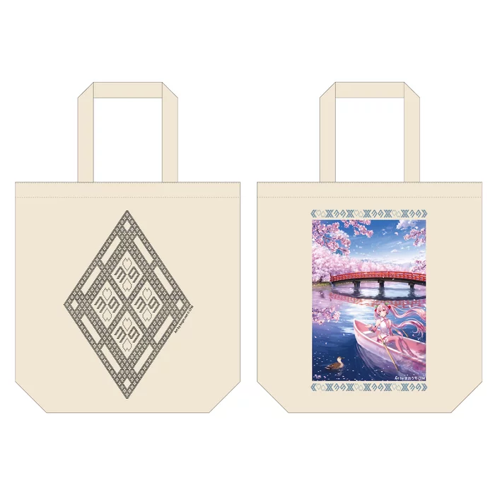 Celebrating the Hirosaki Cherry Blossom Festival comes a beautiful new tote bag of the event's official supporter, Sakura Miku! The bag comes in four different colors. One side of the bag features a "3 x 9" pattern for "Miku," while the other side of the bag features full-color artwork of Miku-chan! Collect all four bags!