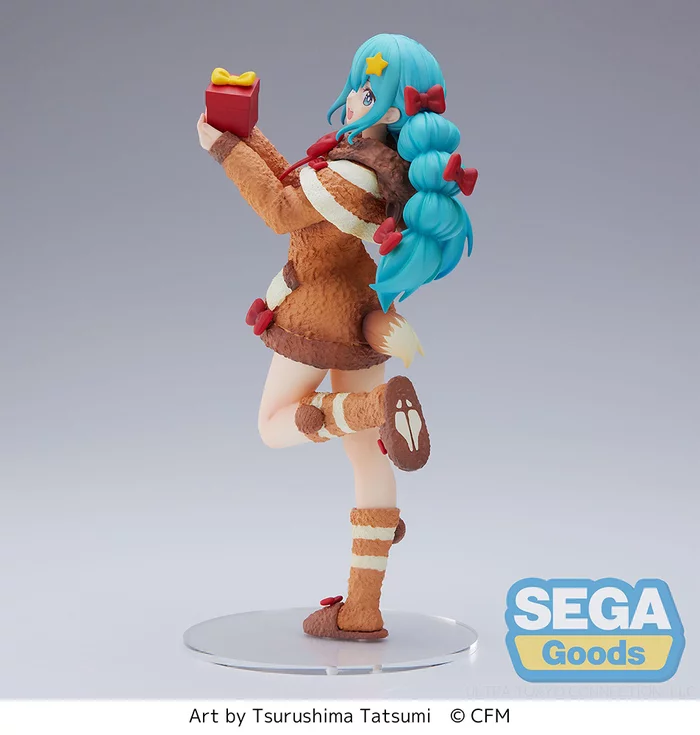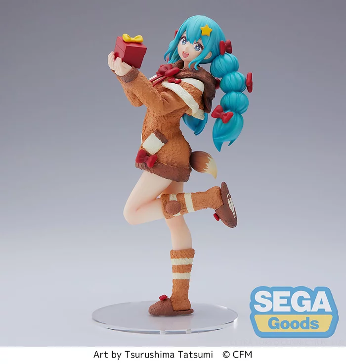 Hatsune Miku is back in SEGA’s Super Premium Figure line of affordable prize figures in a brand new winter look for 2022! Measuring 8.3", the figure is based on artwork by Tatsumi Tsurushima and captures Miku in fluffy, reindeer-themed loungewear holding up a present as she gives a big, cheerful smile. Add her to your collection and spend the season together with Miku!